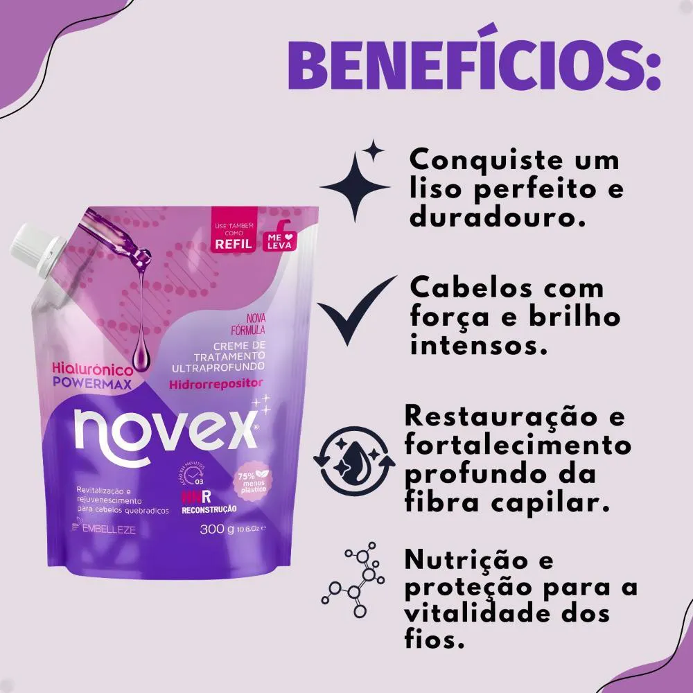 Refil Creme de Tratamento Novex Hialurônico Powemax Hidrorrepositor 300g