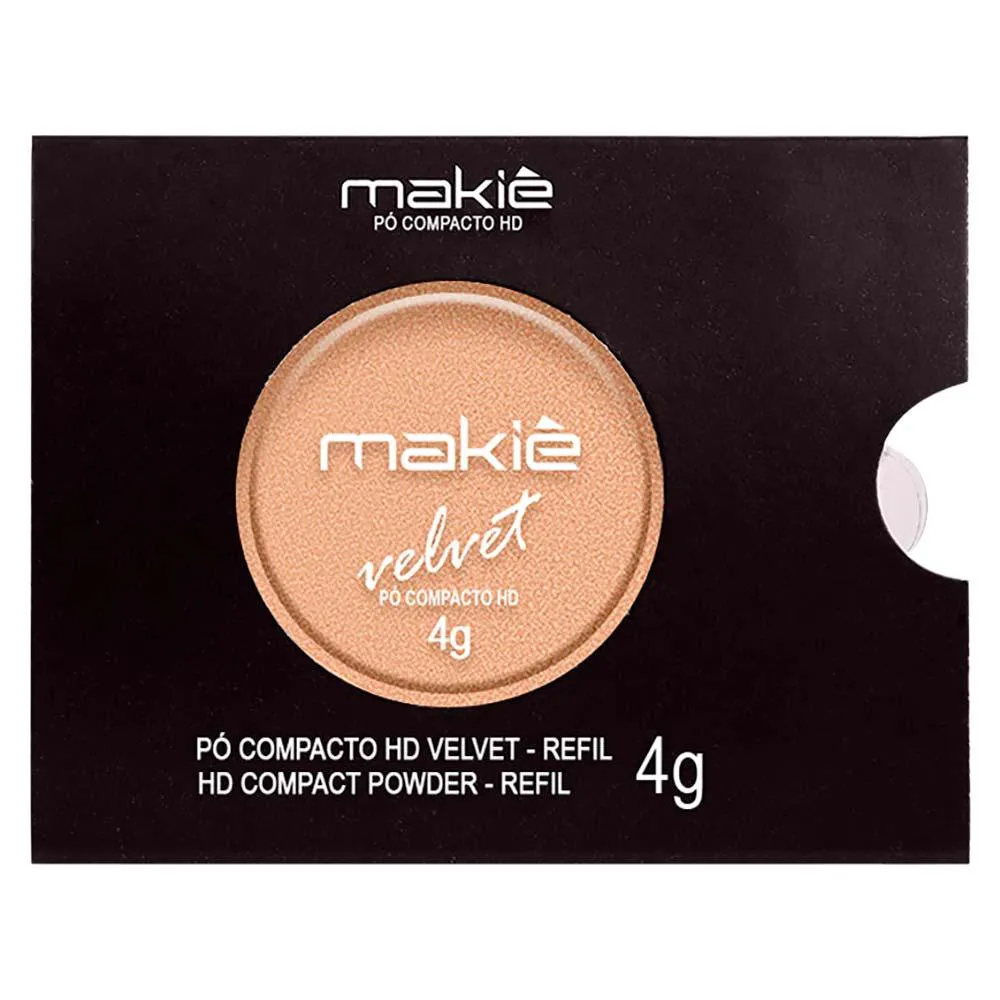 Pó compacto Refil com efeito HD que uniformiza a pele com o efeito matte São 16 tons, sendo 12 acamurçados matte que vão dos mais claros até aos mais naturais e escuros, mais dois bronzers e dois iluminadores. Os pós são de aplicação facial para efeito de selar,colorir levemente, uniformizar, criar contornos incríveis e dar acabamento com o aspecto matte, natural e sem falhas. Aplicando para o efeito desejado, com esponja, pincel ou almofada. Pó Compacto Facial HD Makiê que uniformiza a pele no acabamento da maquiagem com o efeito matte. O principal diferencial dessa formulação é sua textura. Possui um elastômero de silicone que promove uma sensação sedosa e o disfarce óptico das imperfeições. Suas partículas muito pequenas devido ao maquinário de última geração que as microniza e conseguem se depositar sobre as rugas, mascarando as. Ideal para fotos, luz e câmera.