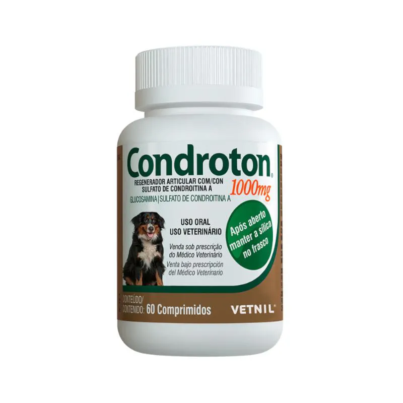 O Regenerador Articular Vetnil Condroton 1000 para Cachorros auxilia no processo regenerativo da cartilagem durante processo degenerativos patológicos ou nas microlesões diárias. Esta medicação possui efeito fisiológico que contribui nas calcificação óssea, manutenção de tendões e ligamentos, e a ação anti-inflamatória e proporciona a síntese do colágeno.