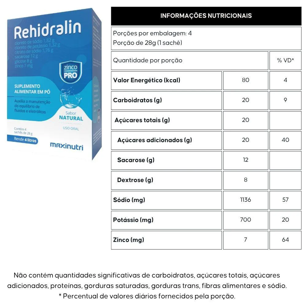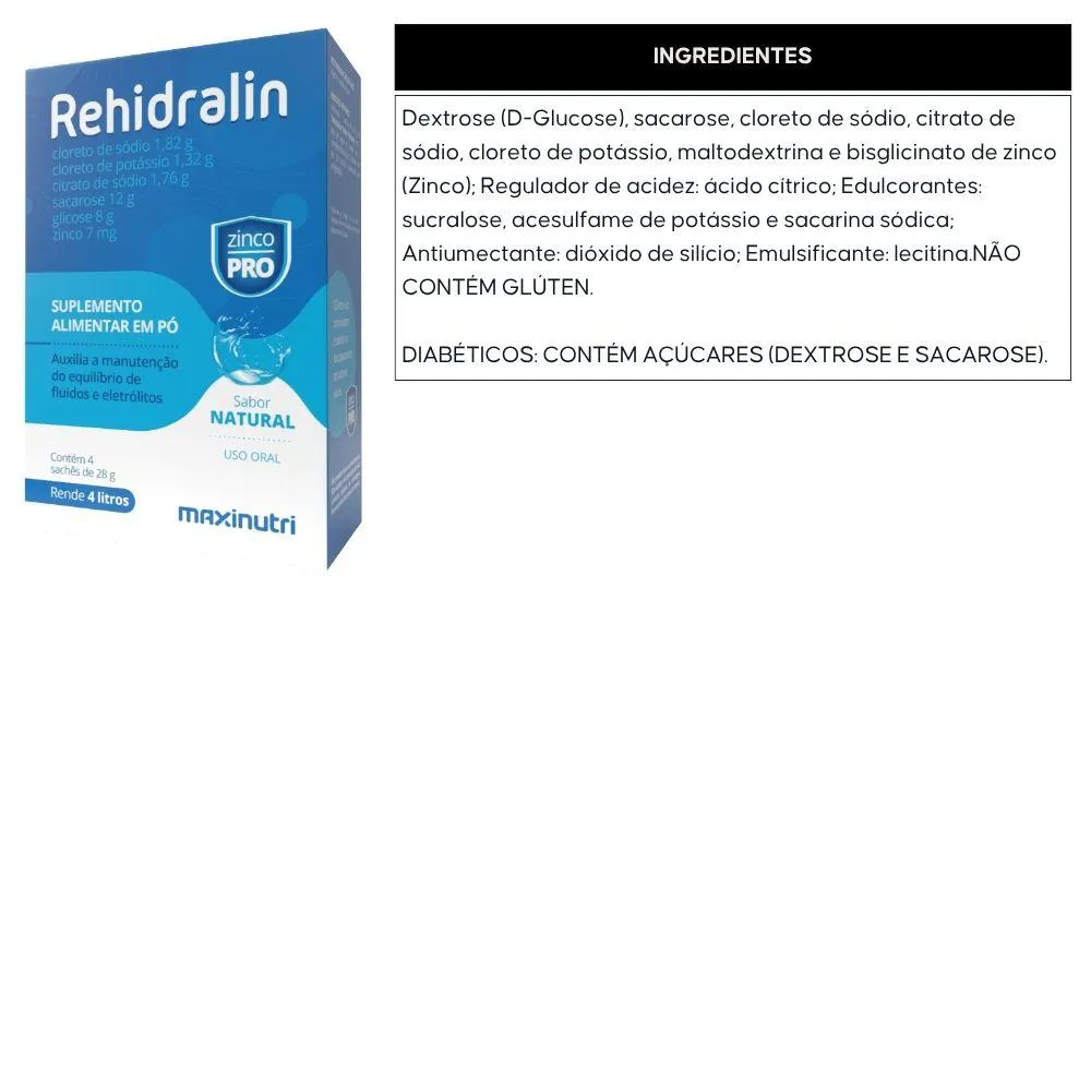 Rehidralin (Repositor de Eletrólitos) 4 Sachês - Maxinutri Natural