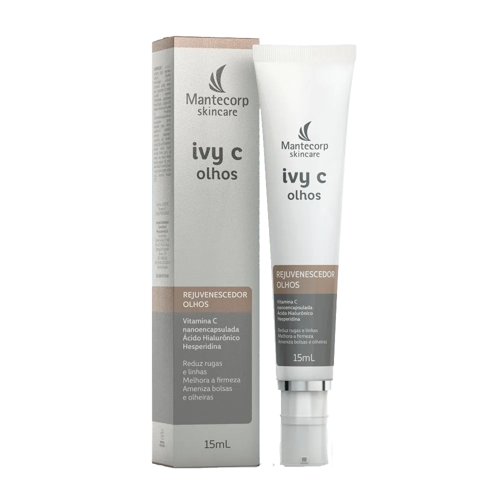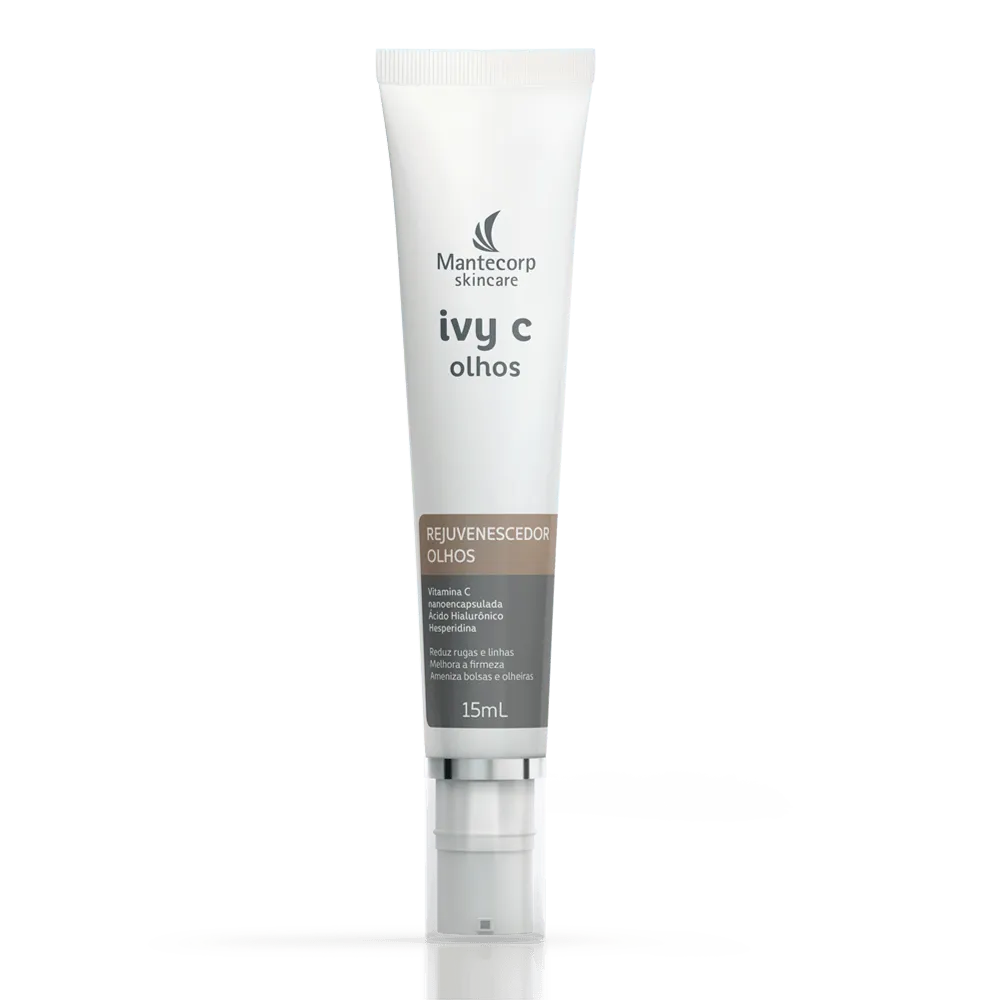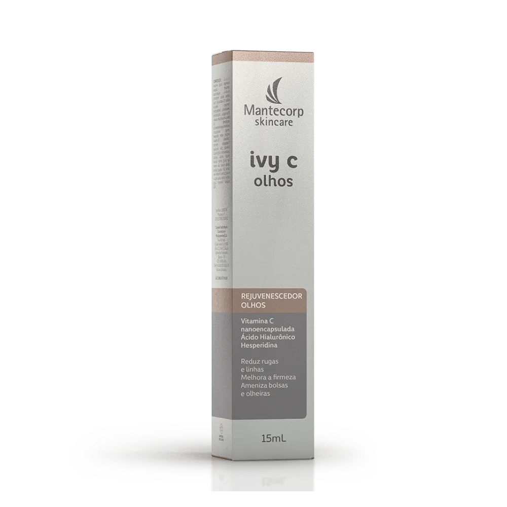 IVY C olhos é um creme rejuvenescedor, para região dos olhos, composto por uma forma de vitamina c nanoencapsulada que garante maior estabilidade e melhor permeação do ativo na pele, intensificando sua ação antioxidante. Ivy C olhos também contém Ácido Hialurônico e Hesperidina que em associação combatem os sinais de envelhecimento nessa região, reduzindo rugas finas, melhorando a firmeza, elasticidade e amenizando olheiras e bolsas. Possui cosmética creme com toque perolado, que ilumina o olhar. Testado dermatologicamente e oftalmologicamente.