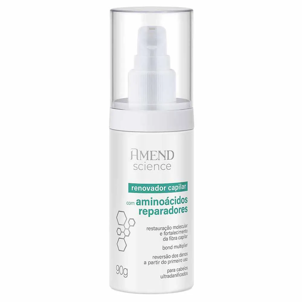 O Renovador Capilar Science Amend é um tratamento avançado desenvolvido especialmente para revitalizar cabelos danificados. Com uma fórmula inovadora, ele trabalha a nível molecular nas cutículas e no córtex dos fios, restaurando a massa capilar perdida e reparando danos profundos. Ideal para quem deseja recuperar a saúde e beleza do cabelo após procedimentos químicos ou uso excessivo de ferramentas térmicas.Quais os benefícios do Renovador Capilar Science Amend?