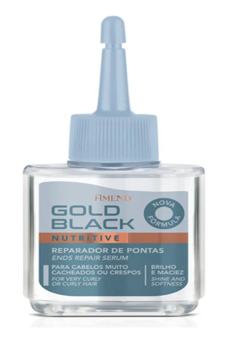 Somos a BUTIQUE DA BELEZA Uma empresa especializada no comércio de cosméticos e Semijoias. Estamos sempre entre os Melhores Vendedores. NOSSO COMPROMISSO É COM VOCÊ! SEU CONFORTO E SEGURANÇA SÃO NOSSOS PROPÓSITOS SERVIR E AJUDAR SÃO NOSSOS DEVERES A Butique da Beleza apresenta Amend Gold Black Nutritive A linha de origem vegana, é composta por ativos complexos, tais como Óleo de Coco, Manteiga de Karité e D-Pantenol, que são responsáveis por reter água dentro dos fios e fornecer hidratação, maciez, e brilho ao cabelo. Dessa maneira, essa linha hidrata cabelos cacheados e crespos na medida certa, reduzindo a porosidade, o volume e o frizz. REPARADOR DE PONTAS AMEND GOLD BLACK NUTRITIVE 30ml O Reparador de Pontas Amend Gold Black é o finalizador e redutor de pontas duplas queridinho das mulheres e dos profissionais cabeleireiros. De ótimo custo benefício, o Reparador com proteção térmica da Amend age formando uma película protetora ao redor dos fios, enquanto condiciona, dá brilho e repara as pontas ressecadas , selando a cutícula e protegendo contra entrada e saída de água. Possui aspecto transparente, incolor, com fragrância frutada, textura leve e oleosa, porém não é gorduroso. A secagem é extremamente rápida, por isso não pesa e nem traz oleosidade ao fio.Seu excelente bico dosador proporciona uma aplicação rápida e precisa. Se a sua preocupação era um reparador de pontas duplas de ótimo custo benefício para a manutenção diária dos seus cabelos, agora com o Finalizador Amend Gold Black você pode ficar tranquila. Não perca tempo e adquira esse óleo reparador maravilhoso, que tratá maciez e sedosidade aos fios, fazendo com que seu cabelo esteja sempre sedoso e alinhado, com fios aveludados e sem frizz. ATIVOS Silicones INDICADOS Cabelos Cacheados Cabelos Crespos Todos os Tipos de Cabelos BENEFÍCIOS Hidratação Brilho Maciez Redução de Volume Redução de Frizz Definição de Cachos Sedosidade MODO DE USO Com os cabelos secos ou úmidos aplique 2 ou 3 gotas na palma da mão e espalhe do comprimento até as pontas. Não necessita enxaguar Pode ser utilizado como modelador de cachos, para isso amasse os fios suavemente. DICA DA BUTIQUE DA BELEZA Para um resultado otimizado, utilize os produtos da linha de Amend Gold Black Nutritive.