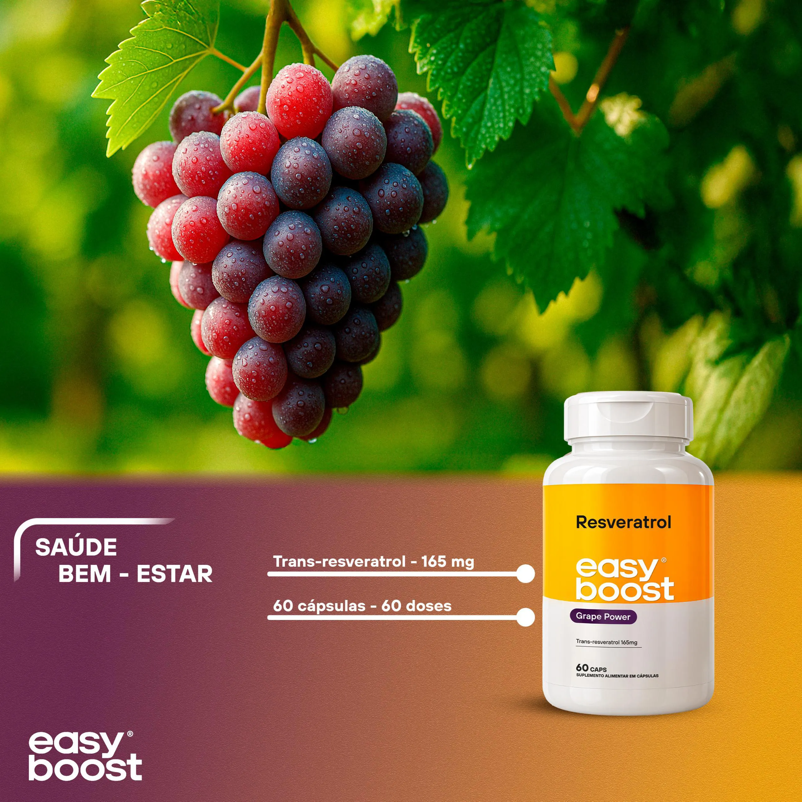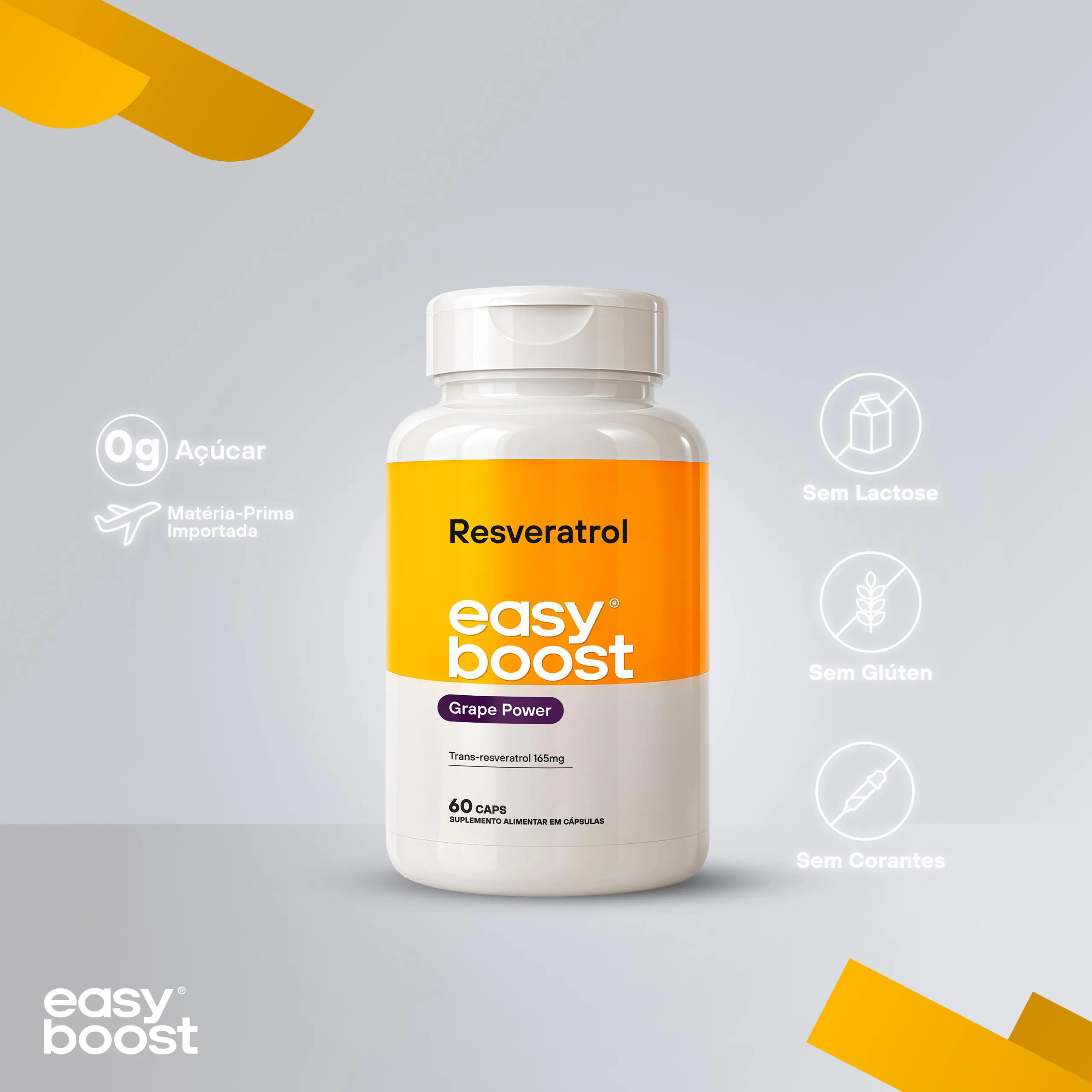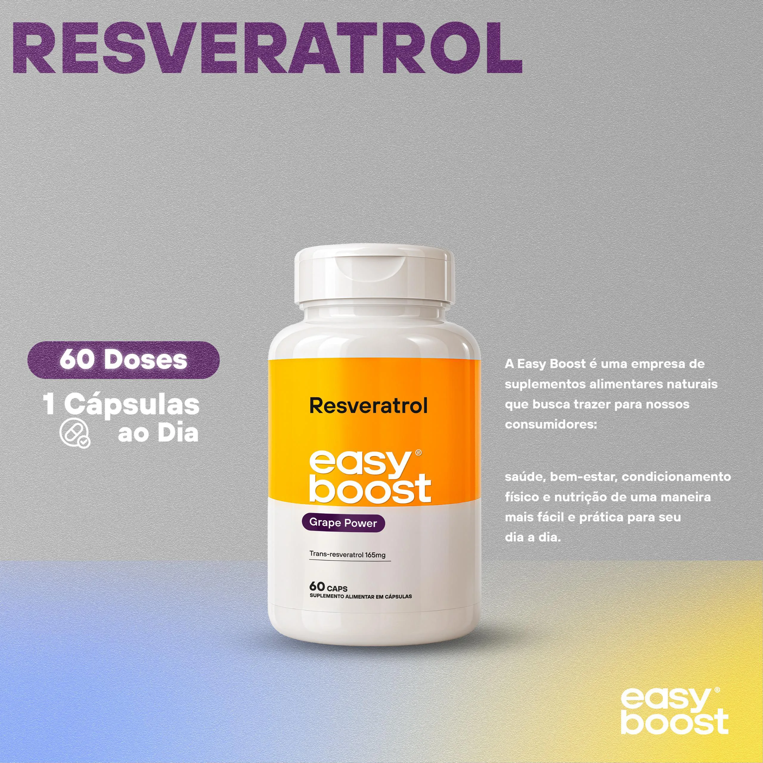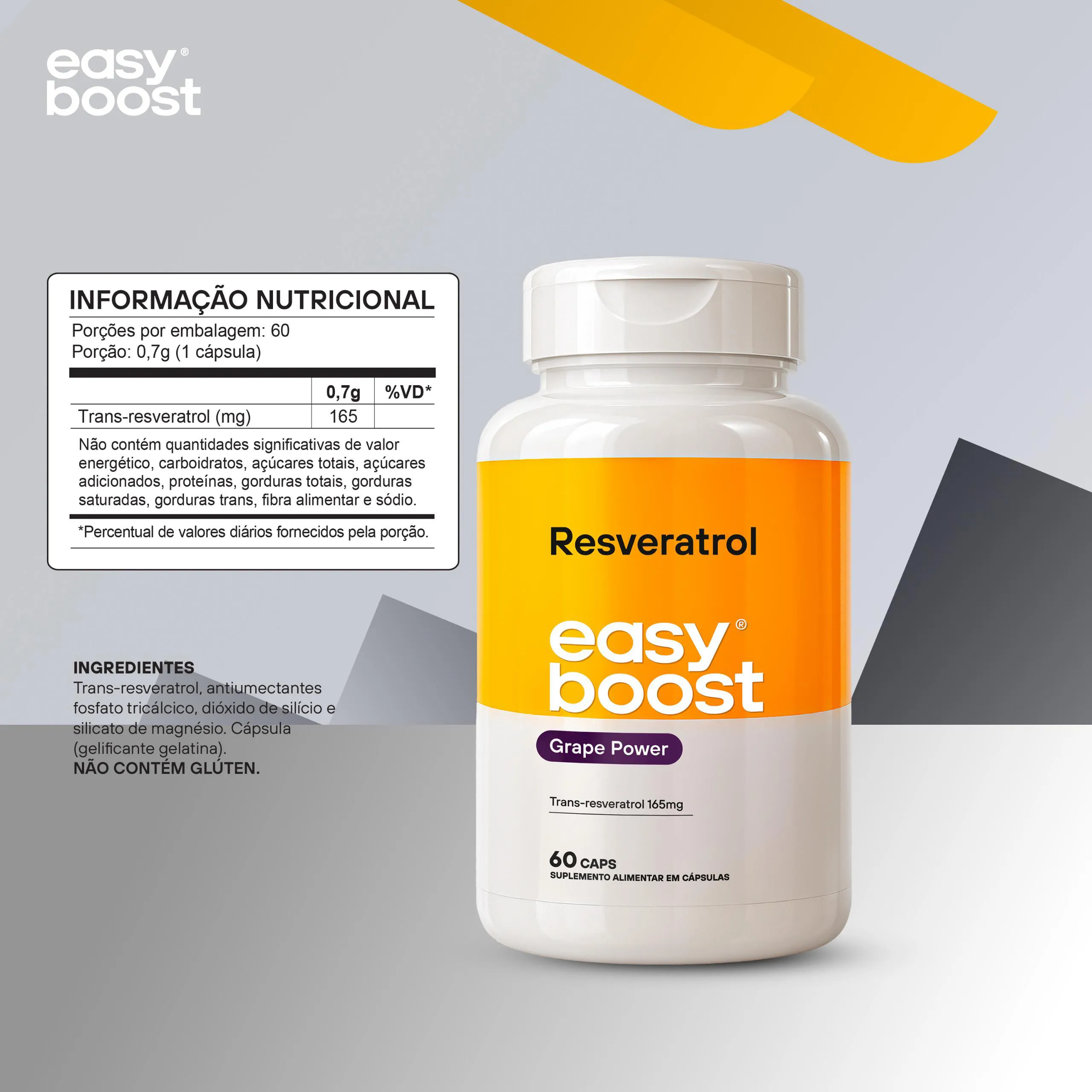 Resveratrol Easy Boost 165mg 100% Trans - Resveratrol 60 cápsulas