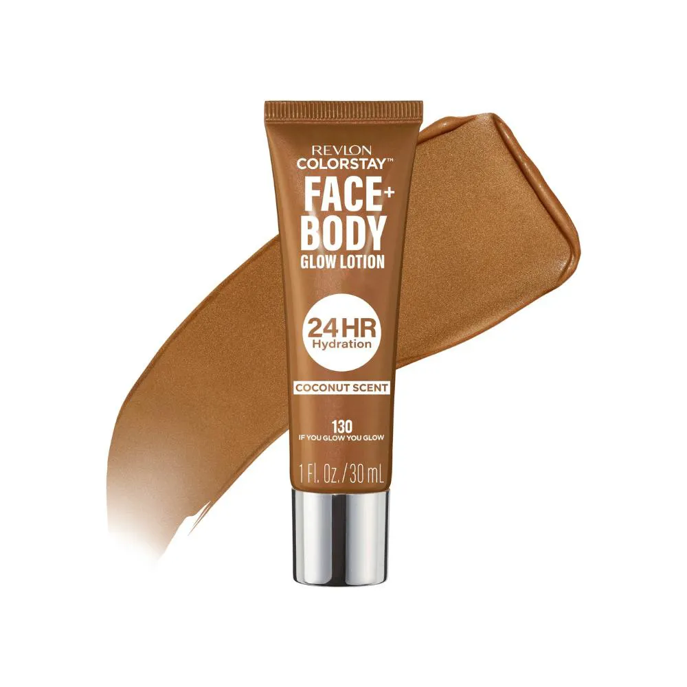 Um brilho saudável. Por todo o corpo. A NOVA Loção Revlon ColorStay Face + Body Glow prepara, hidrata e ilumina a pele instantaneamente, proporcionando hidratação por 24 horas. Este produto multifuncional pode ser usado sozinho como sua loção diária para rosto e corpo, para iluminar e dar um acabamento extra radiante, ou aplicado como bronzeador para um look luminoso e bronzeado. Ilumine as bochechas, o arco do cupido ou abaixo da sobrancelha. Ou use nos ombros, clavícula e em qualquer outro lugar que você queira brilhar. Formulado com pérolas ultrarrefinadas para um brilho dimensional, além de um aroma fresco de coco que vai te deixar com a sensação de estar de férias.