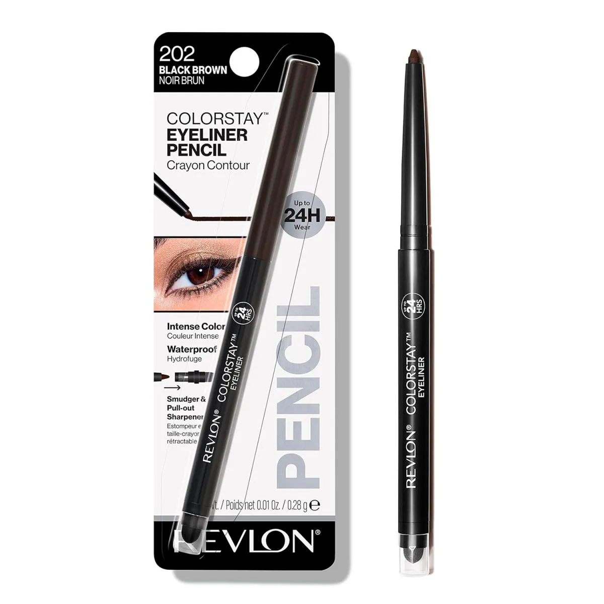 - O delineador novo e aprimorado permanece onde deveria por até 24 horas - além de ser à prova d'água!