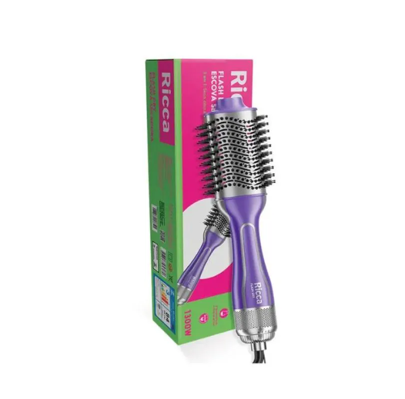 A Ricca – Flash Dry Escova Secadora é um aparelho de beleza multifuncional projetado para tratamento capilar, que combina as funções de secador, escova alisadora e modelador de cabelo. Com design oval, potência de 1300W, cabo de 2m e tecnologia bivolt, possui recursos como 2 temperaturas, 2 potências e função de ar frio para personalização do uso.