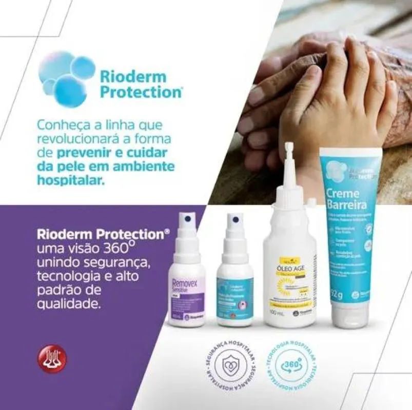 O Rioderm Protection é um creme barreira dermocosmético profissional desenvolvido para proteger e cuidar da pele. Serve para formar uma barreira protetora de longa duração contra agentes externos, hidratando e condicionando a pele em situações como exposição a exsudatos, incontinência e uso de curativos, sendo especialmente indicado para proteger a pele íntegra em ambientes hospitalares, domiciliares e institucionais.