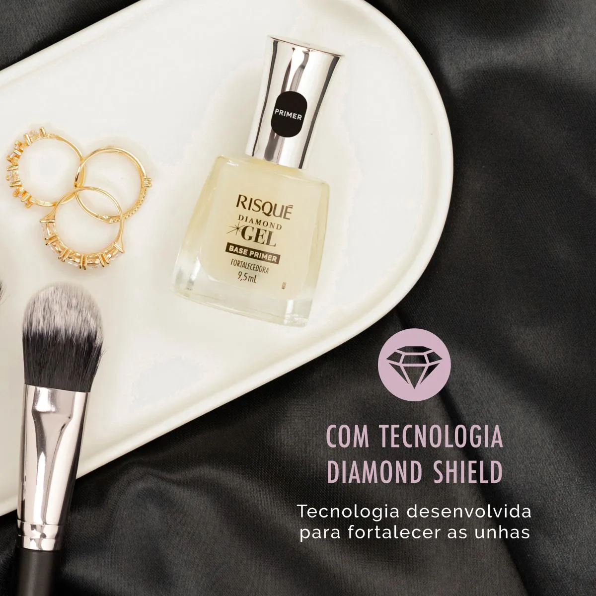 A Base Primer Risqué Diamond Gel é uma base fortalecedora desenvolvida para preparar as unhas antes da esmaltação. Ela atua como o primeiro passo do cuidado com as unhas na linha Diamond Gel, promovendo fortalecimento e proteção para as unhas naturais.