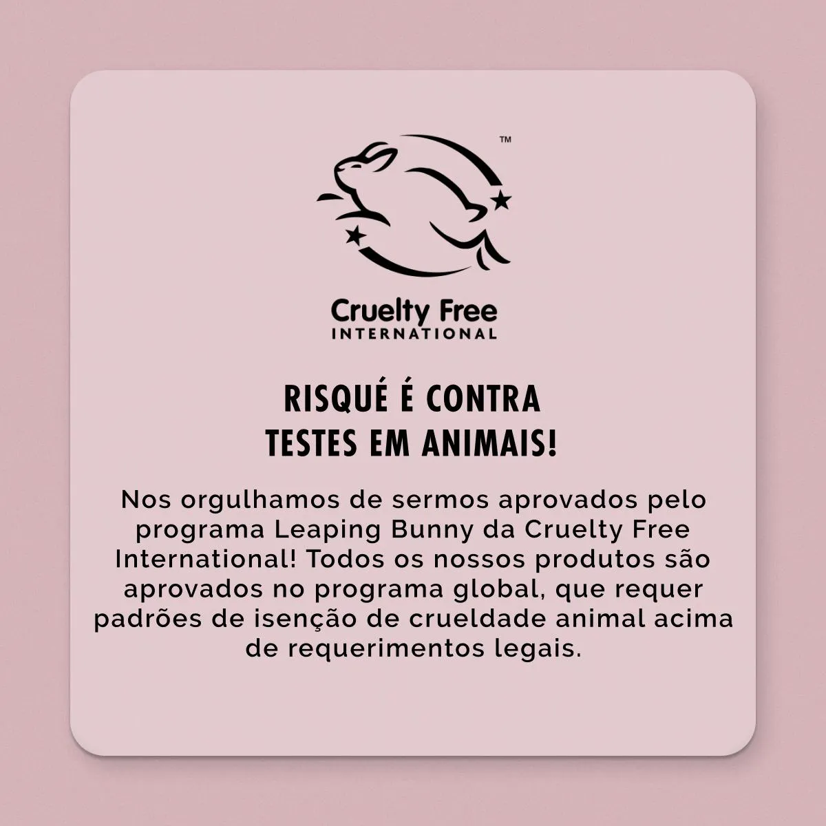 - Produto aprovado pelo programa Leaping Bunny da Cruelty Free International.