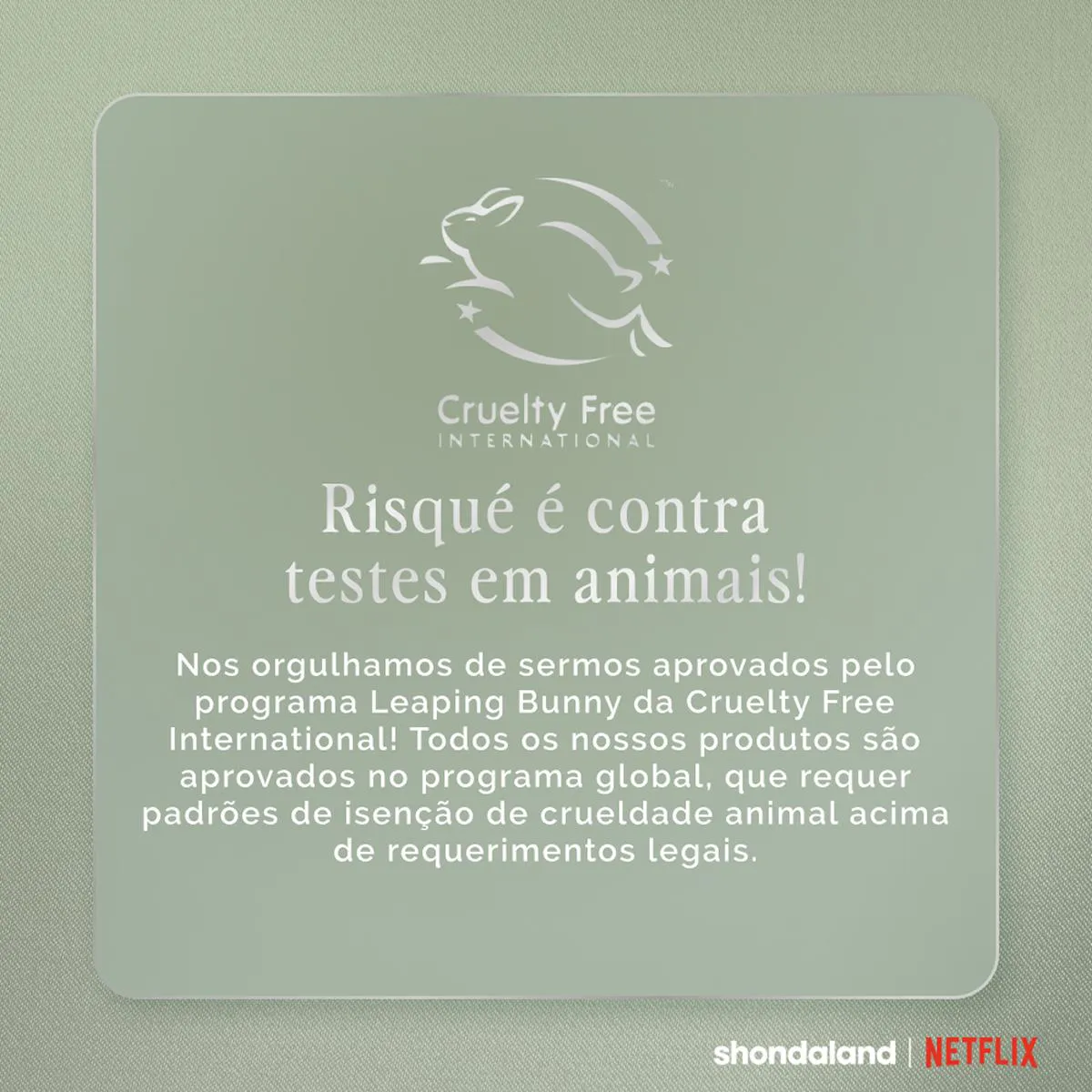 - Produto Cruelty Free, certificado pelo programa Leaping Bunny da Cruelty Free International.
