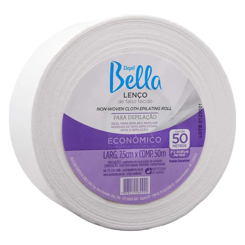 Rolo Lenço Tnt para Depilação Depil Bella 50 Metros Branco