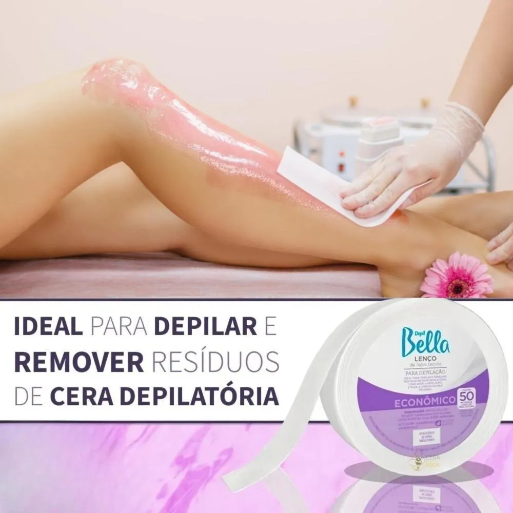 Lenço de tecido não tecido (TNT) especialmente desenvolvido para depilação profissional ou uso doméstico, proporcionando suporte seguro e higiénico para aplicação de ceras quentes e frias, com alta resistência e deslizamento suave durante o procedimento.Sua composição em TNT de alta qualidade oferece toque leve e textura firme, facilitando a retirada da cera e dos pelos sem rasgar ou deformar, além de garantir eficiência e conforto tanto para o profissional quanto para quem está sendo depilado.Ideal para uso em salões de beleza, barbearias e atendimentos em domicílio, o rolo de lenço depilatório permite cortar a metragem necessária conforme a área de aplicação, otimizando o consumo e garantindo maior higiene em cada sessão.Indicado para todos os métodos de depilação com cera quente ou fria, o Rolo Lenço TNT Depil Bella contribui para um atendimento mais organizado, seguro e confortável, auxiliando no acabamento suave e profissional da pele.