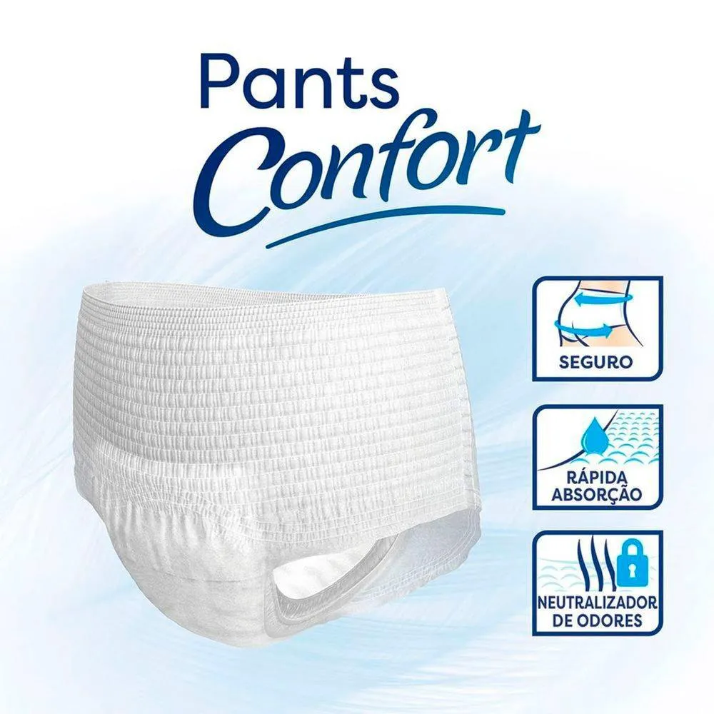 Roupa Íntima Descartável TENA Pants Confort é uma roupa íntima descartável e unissex de rápida absorção, proporcionando ao usuário ativo ou com pouca mobilidade facilidade de uso, discrição e segurança.