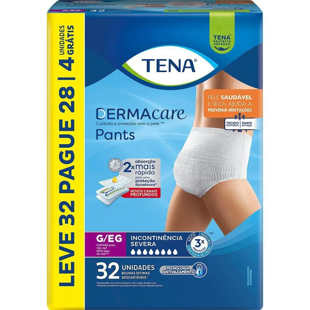 Roupa Íntima Tena Pants Dermacare G/Eg Leve 32 Pague 28 Unidades