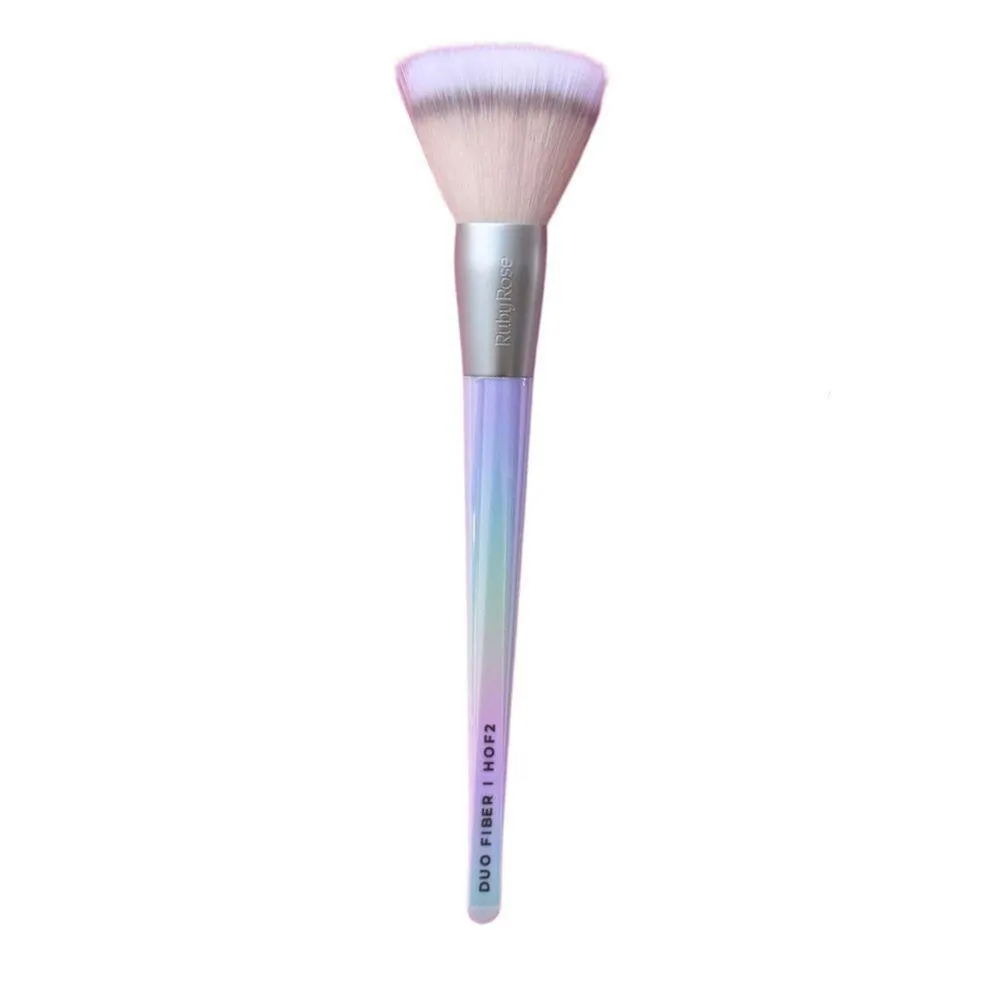 O Pincel Duo Fiber Holographic HBHOF2 da Ruby Rose é um acessório versátil projetado para aplicação de produtos líquidos e em pó. Com cerdas macias e densas, proporciona uma aplicação precisa e uniforme, garantindo um acabamento .