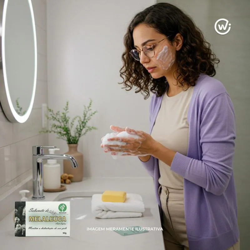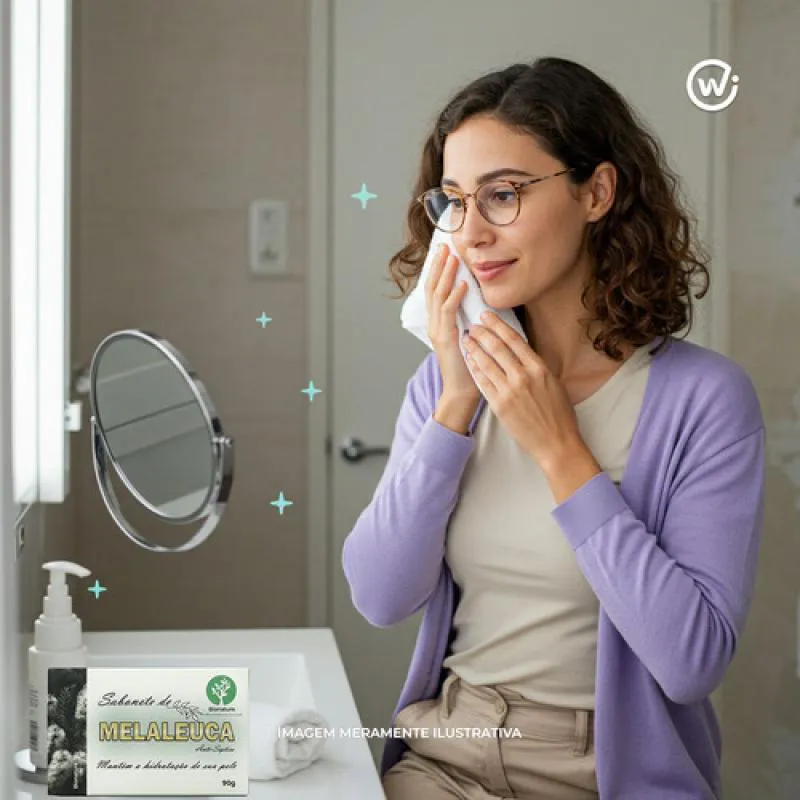 O Sabonete de Melaleuca 90g da Bionature é formulado com óleo essencial de melaleuca (tea tree), reconhecido por suas propriedades antissépticas, antifúngicas, antibacterianas e anti-inflamatórias. Sua proposta é promover uma limpeza profunda sem agredir a pele, ajudando a controlar oleosidade e auxiliar no equilíbrio da pele facial e corporal. Este sabonete é ideal para peles oleosas, acneicas ou com tendência a cravos, mas pode ser usado por qualquer pessoa que queira manter a pele limpa e revitalizada.