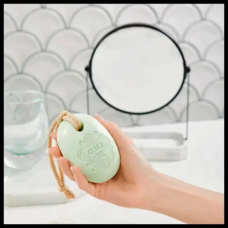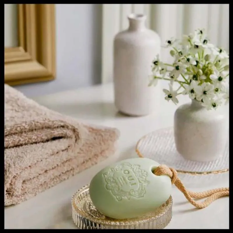 O Savon Parfumé vem acompanhado por uma corda de algodão, que você pode enrolar no pulso, evitando que ele escorregue, e também pendurar na válvula do seu chuveiro após o uso para perfumar o ambiente. C’est très fantastique!
