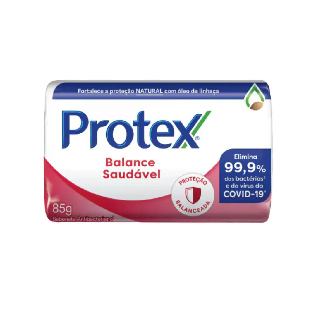 sabonete em Barra Protex Balance Saudavel 85g Ajuda a prevenir a proliferação de bactérias. Elimina 99,9%** das bactérias. Protege por até 12 horas. O que é o Kit sabonete em Barra Protex Balance Saudável? O Sabonete em Barra Protex Balance Saudável possui fórmula exclusiva com pH balanceado, que ajuda a limpar e remover as impurezas da pele. ara que serve o Kit Sabonete em Barra Protex Balance Saudável? Sua fórmula auxilia a eliminar até 99,9% das bactérias, para a boa saúde da sua pele. Como usar o Sabonete em Barra Protex Balance Saudável? Espalhe o sabonete por todo o corpo e rosto, com uma esponja ou com as mãos, até formar uma rica e cremosa espuma. Enxágue e sinta sua pele macia, saudável e protegida. Marca: Protex Linha: Balance Saudável Tipo: Sabonete em barra Peso unitário: 85g Ação: Elimina até 99,9% das bactérias Proteção: Até 12 horas Fórmula: pH balanceado Indicação: Corpo e rosto Textura: Espuma cremosa Validade: Vide embalagem