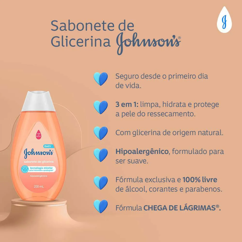 O Sabonete Líquido de Glicerina Da Cabeça aos Pés Johnson's Baby foi especialmente desenvolvido para cuidar da delicada pele do bebê, garantindo limpeza, hidratação e proteção contra o ressecamento. A pele dos bebês é mais fina e sensível do que a dos adultos, perdendo água rapidamente. Por isso, manter uma rotina adequada de higiene desde os primeiros dias de vida é essencial. Este produto oferece um cuidado completo com 3 benefícios em 1 só fórmula: limpa suavemente, hidrata profundamente e protege a barreira natural da pele.Quais os benefícios do Sabonete Líquido de Glicerina Da Cabeça aos Pés Johnson's Baby?