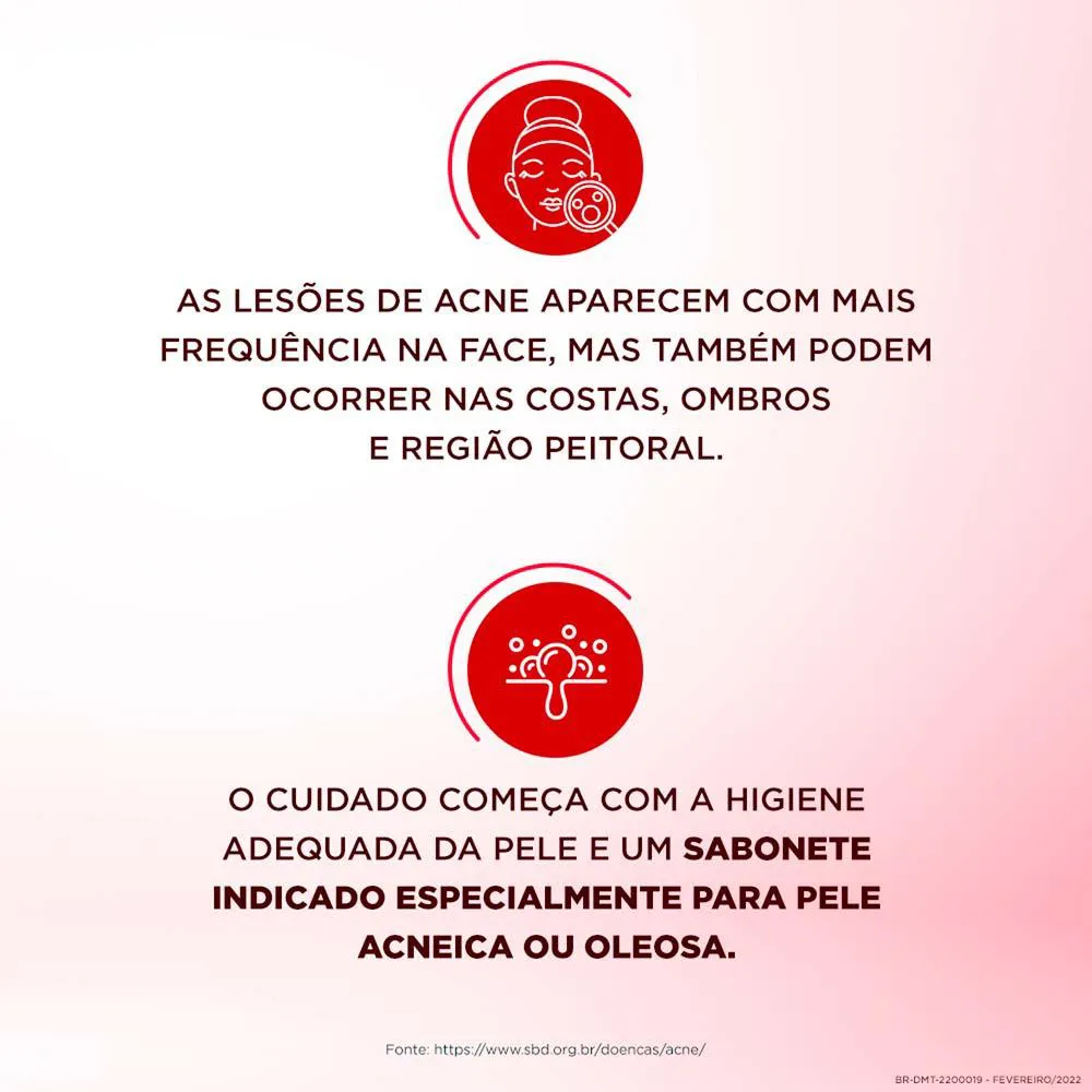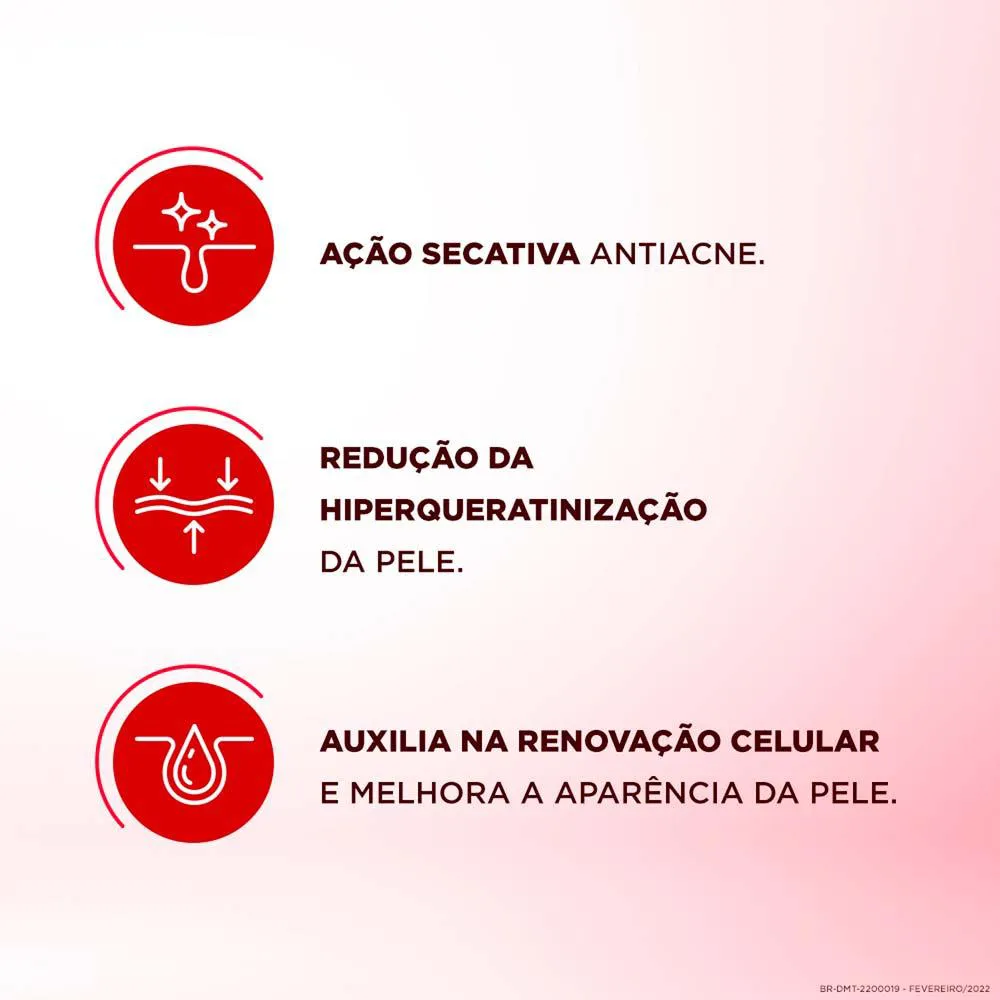 Proporciona uma pele mais uniforme e redução na quantidade das lesões acneicas.