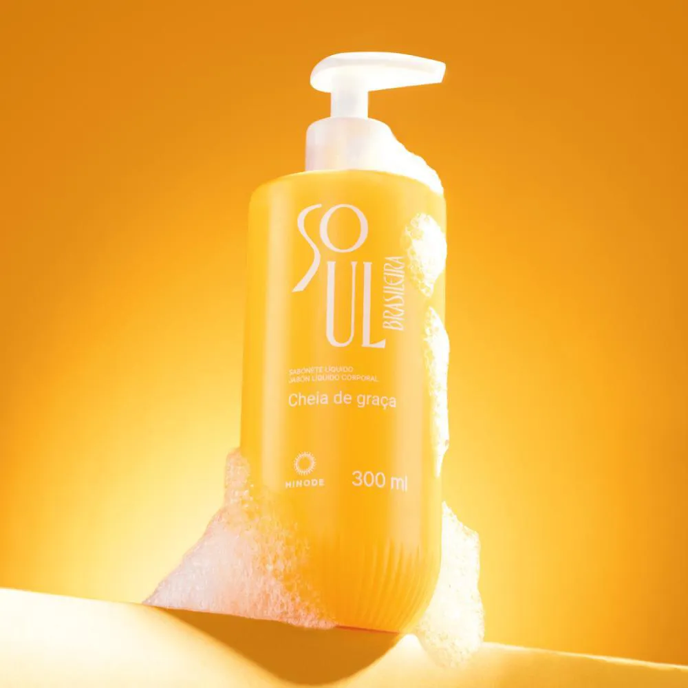 Transforme seu banho em um momento de leveza e bem-estar com o sabonete Líquido Soul Brasileira Cheia de Graça Hinode.