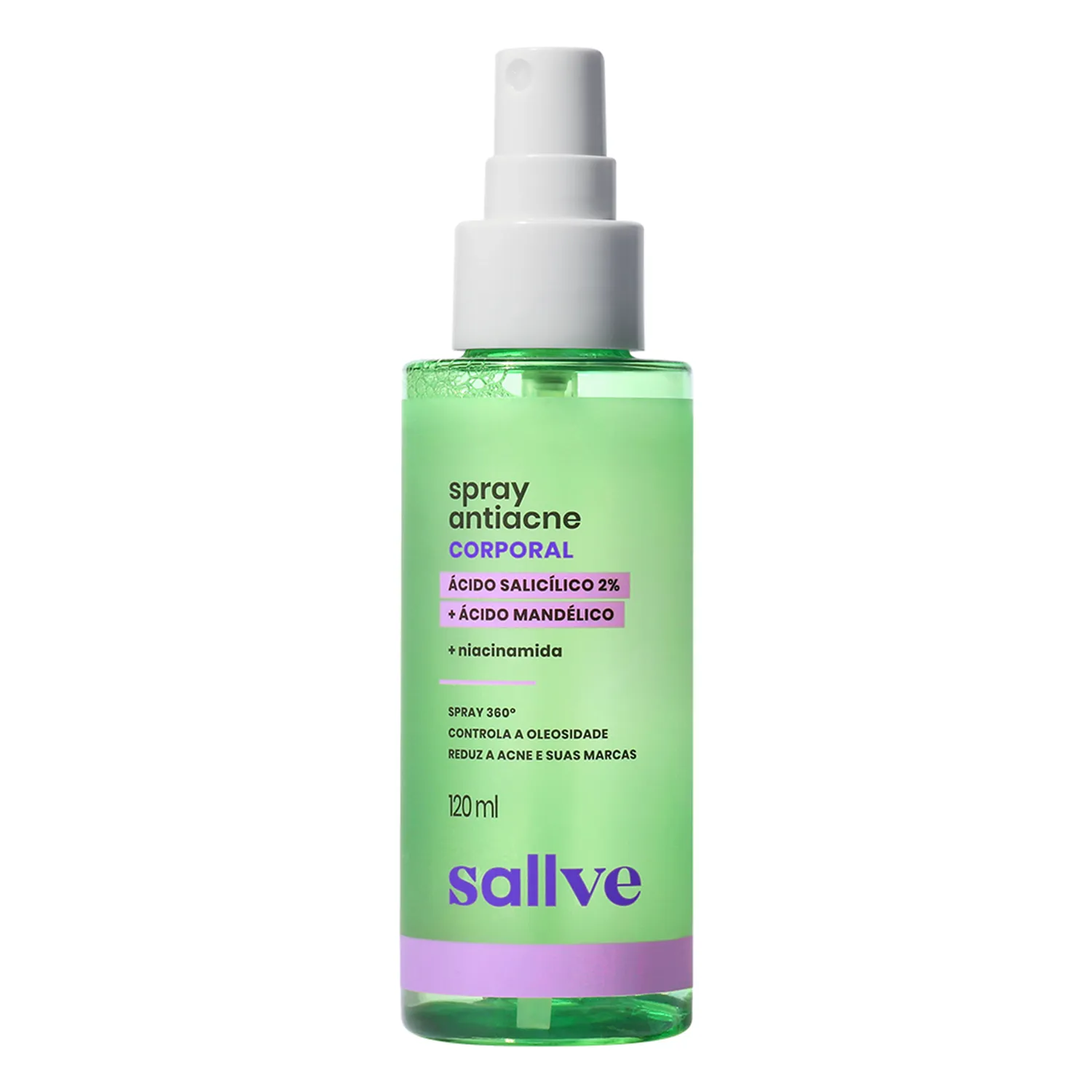 O Spray Antiacne Corporal Sallve com Niacinamida é um tratamento eficaz para acne, desenvolvido com uma fórmula potente que combina ácido salicílico, ácido mandélico e niacinamida.