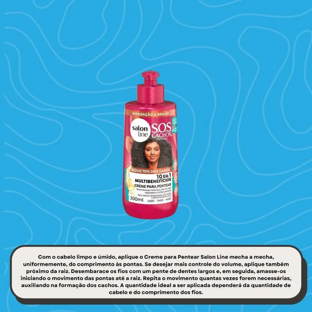 - 01 – Creme de Pentear Salon Line SOS Cachos Multibenefícios Creme para Cabelo Cacheado 300 mlSugestão de uso complementar