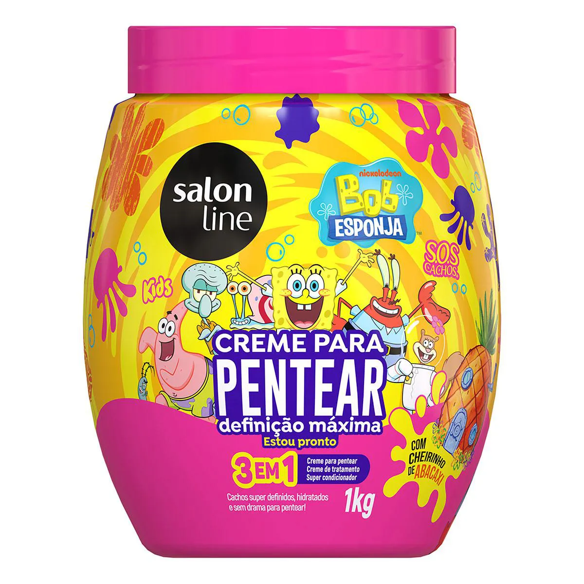 O Creme para Pentear S.O.S Cachos Kids Bob Esponja Definição Máxima da Salon Line é um produto 3 em 1 que garante praticidade e cuidado na rotina capilar infantil. Ele pode ser usado como creme para pentear, creme de tratamento ou condicionador, promovendo cachos super definidos, hidratados e fáceis de desembaraçar. Com fragrância de abacaxi, o produto deixa os fios macios, brilhantes e sem frizz, sendo ideal para cabelos ondulados, cacheados e crespos porosos ou sem brilho. Além disso, é vegano e dermatologicamente testado, garantindo segurança e suavidade para o uso diário das crianças.