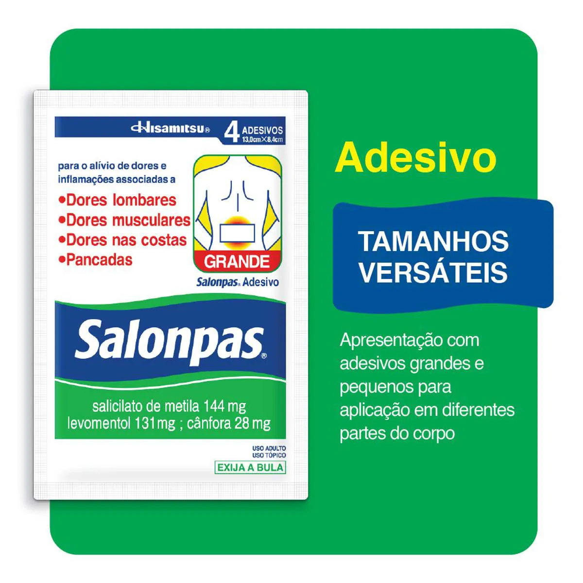 SALONPAS® Adesivo é contraindicado para pacientes que já apresentaram alguma reação alérgica ao ácido acetilsalicílico, a outros anti-inflamatórios não esteroidais ou já tenham demonstrado hipersensibilidade a qualquer um dos componentes da fórmula.