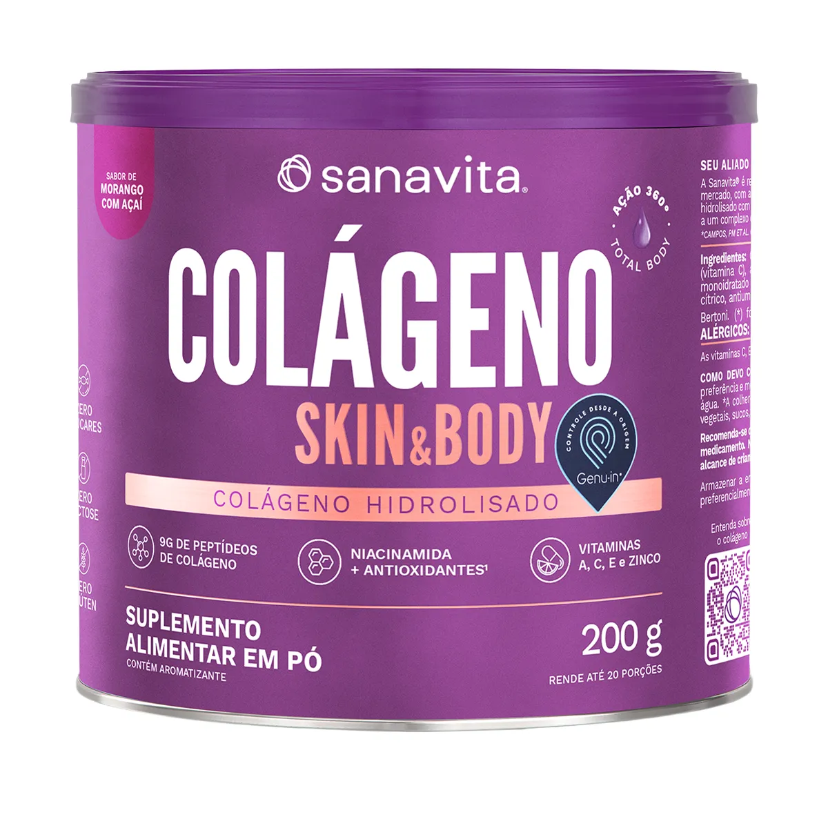O colágeno Sanavita Skin é um suplemento alimentar para a pele em pó que traz complexo de vitaminas e minerais (vitamina a, C, E e zinco) com ação antioxidante e precursora de colágeno, além de resultados comprovados em estudo clínico com apenas 3 meses de uso. Esta embalagem com 200g rende até 20 porções.