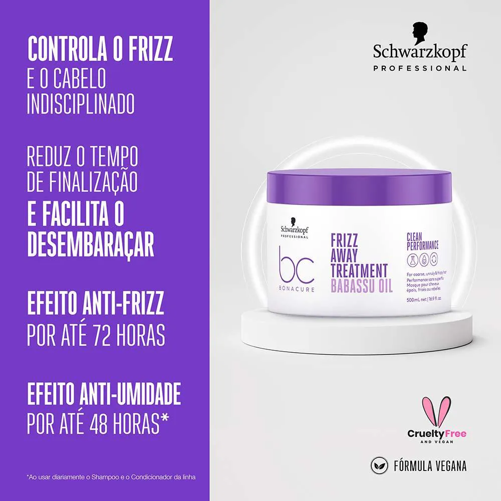 A linha Bonacure Frizz Away com Óleo de Babaçu foi desenvolvida com fórmula inteligente que controla o frizz de lavagem em lavagem, minimizando o tempo de finalização e facilitando o desembaraçar. Para um cabelo mais suave, brilhante, hidratado e maleável.