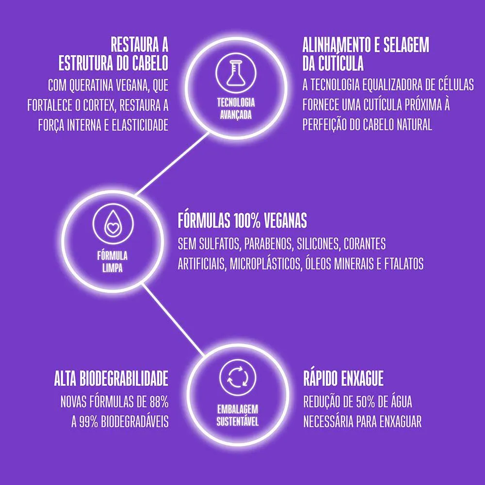 A fórmula suaviza a superfície e melhora a maleabilidade instantaneamente, adicionando um brilho intenso.