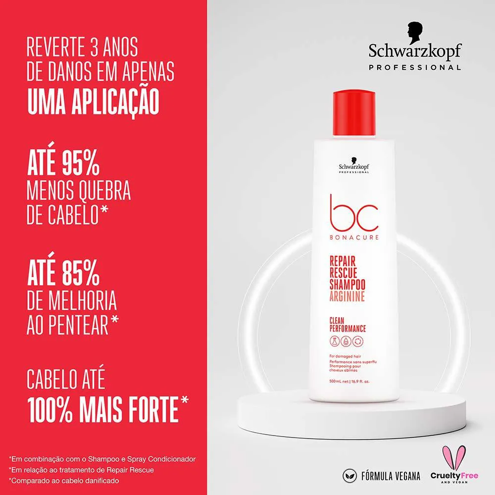 Repair Rescue para cabelos danificados com Arginina que reverte instantaneamente 3 anos de danos em apenas uma aplicação.