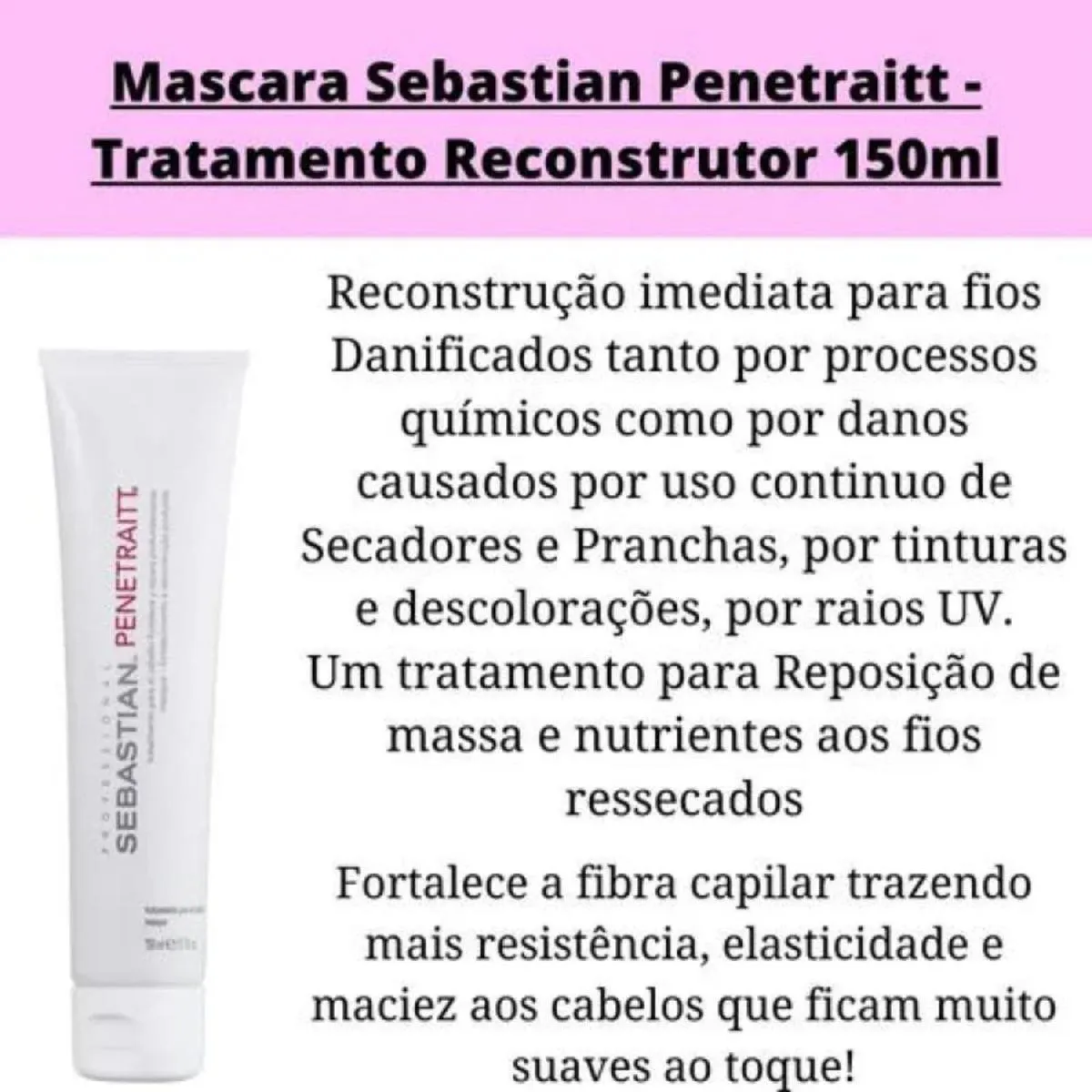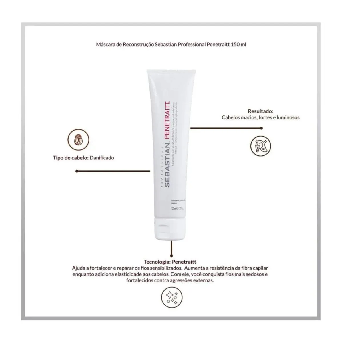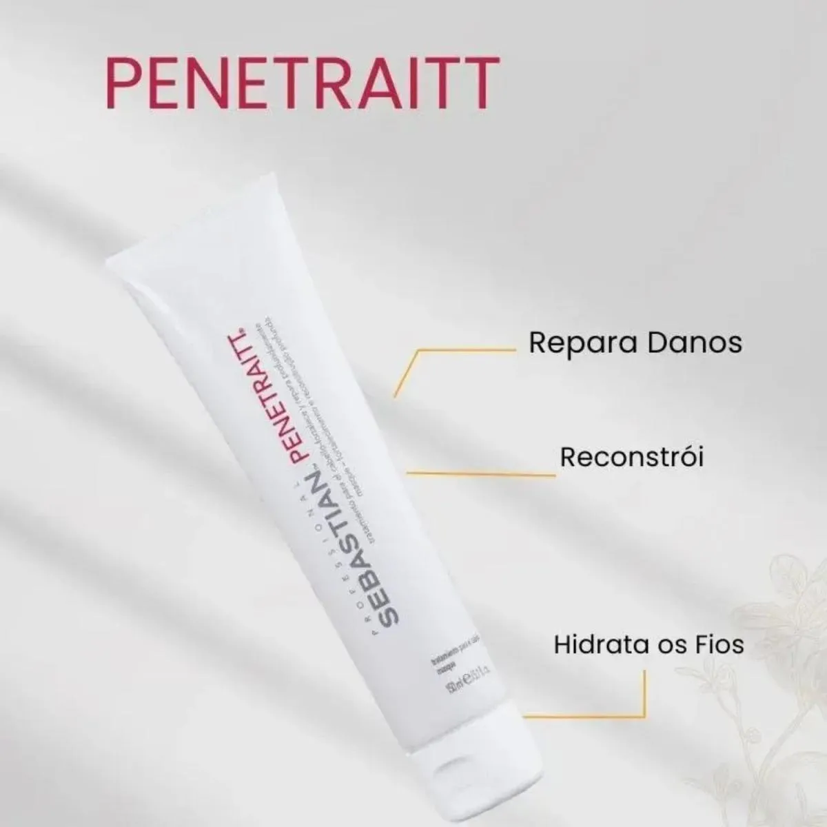 Sebastian Penetraitt Máscara 150ml é um tratamento reconstrutor intensivo que fortalece e repara profundamente os cabelos danificados por processos químicos, térmicos ou agressões externas. Sua fórmula profissional penetra na fibra capilar, restaurando a vitalidade e proporcionando fios mais fortes, macios e brilhantes. Benefícios: