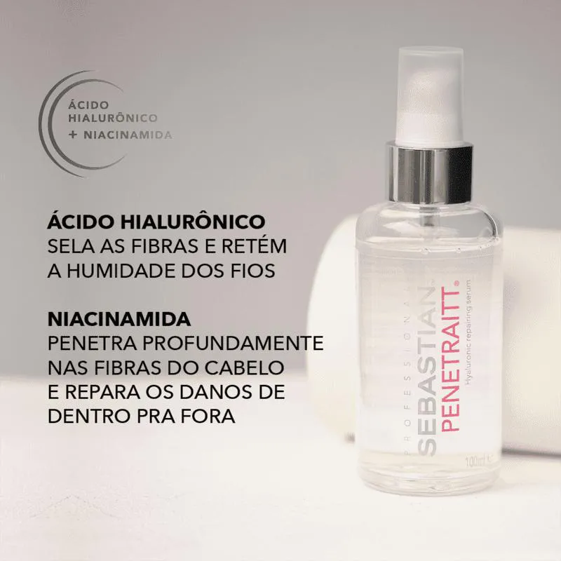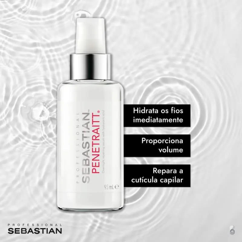 O Sebastian Penetraitt é um sérum reparador noturno premium da renomada marca Sebastian Professional, projetado para regenerar cabelos secos e danificados por ferramentas térmicas, colorações ou fatores ambientais. Parte da linha Penetraitt, dedicada à reparação profunda e fortalecimento da fibra capilar, este tratamento leave-in utiliza uma fórmula inovadora com ácido hialurônico e niacinamida para penetrar intensamente nos fios durante o sono, restaurando suavidade, brilho e vitalidade. Inspirado na expertise de salões profissionais em soluções transformadoras, é ideal para quem experimenta com estilos ousados e busca resultados visíveis sem esforço diário. A embalagem elegante, com frasco de plástico reciclável e pump ergonômico, garante praticidade e sustentabilidade, refletindo o compromisso da marca com a inovação ética e a sofisticação acessível.