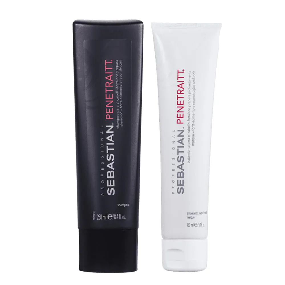 Kit Sebastian Professional Penetraitt traz shampoo de uso diário, que purifica suavemente o fio, e máscara de tratamento, que penetra profundamente para garantir a hidratação, nutrição e fortalecimento necessário para a estrutura do