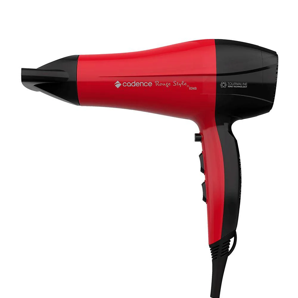 O Secador Rouge Style Cadence chegou para impressionar. Com ions de turmalina, ajuda da reducao do frizz ao mesmo tempo em que seu bocal direcionador e mais de 2000W de potencia garantem uma secagem e modelagem sem igual. - Acao anti-frizz com ions de turmalina - 3 temperaturas para secar e modelar - 2 velocidades, forca e delicadeza - Bocal direcionador para mais controle Para quem opta por cabelos mais volumosos, a dica e secar a raiz para cima, direcionando o jato do secador e usando a escova para elevar as mechas, o resultado e natural. Especificacoes: Marca: Cadence Modelo: SEC560 Linha: Rouge Style Uso: Domestico Tecnologia: Ions de Turmalina Potencia: 2000W Velocidades: 2 velocidades Niveis de Temperatura: 3 niveis Acessorios: 1 Bocal direcionador Comprimento do Cabo de Energia: 1,8m Voltagem: 110V Tipo de Tomada: 10A Consumo Aproximado de Energia: 2 kw h - Conteudo da Embalagem: 1 Secador, acessorios, manual de instrucoes e folheto de assistencia tecnica. - Garantia do Fabricante: 12 meses