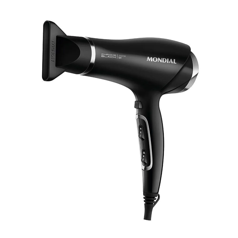 O secador Chrome Black SCN-04 da Mondial é garantia de cabelos secos com maciez e brilho! O revestimento com Tourmaline Íon emite íons negativos, que fecham as cutículas dos fios e reduzem o frizz. Já a alta potência, de 2000W, proporciona uma secagem rápida e eficiente. O secador possui 3 temperaturas, 2 velocidades e jato de ar frio: basta alternar entre as variações para uma secagem mais adequada ao seu tipo de cabelo. Saiba mais sobre o SCN-04 da Mondial: