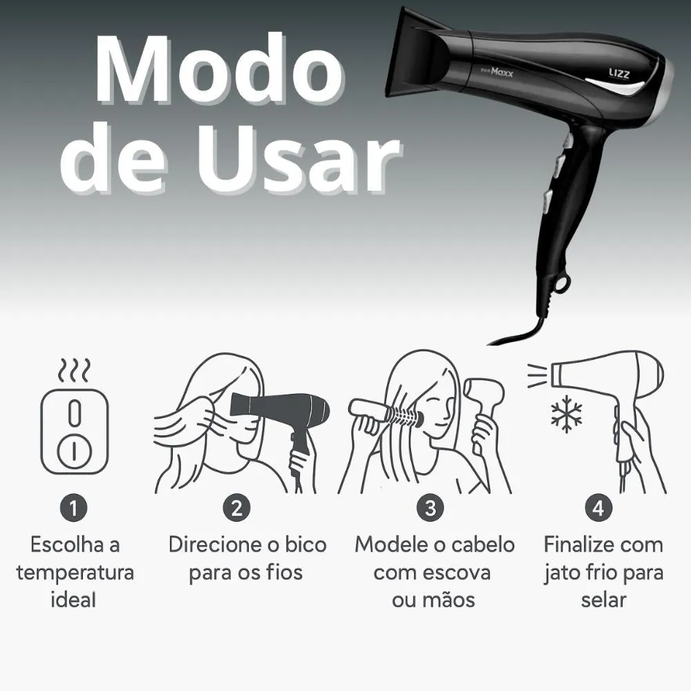 - Potente: até 2000W para uma secagem rápida.