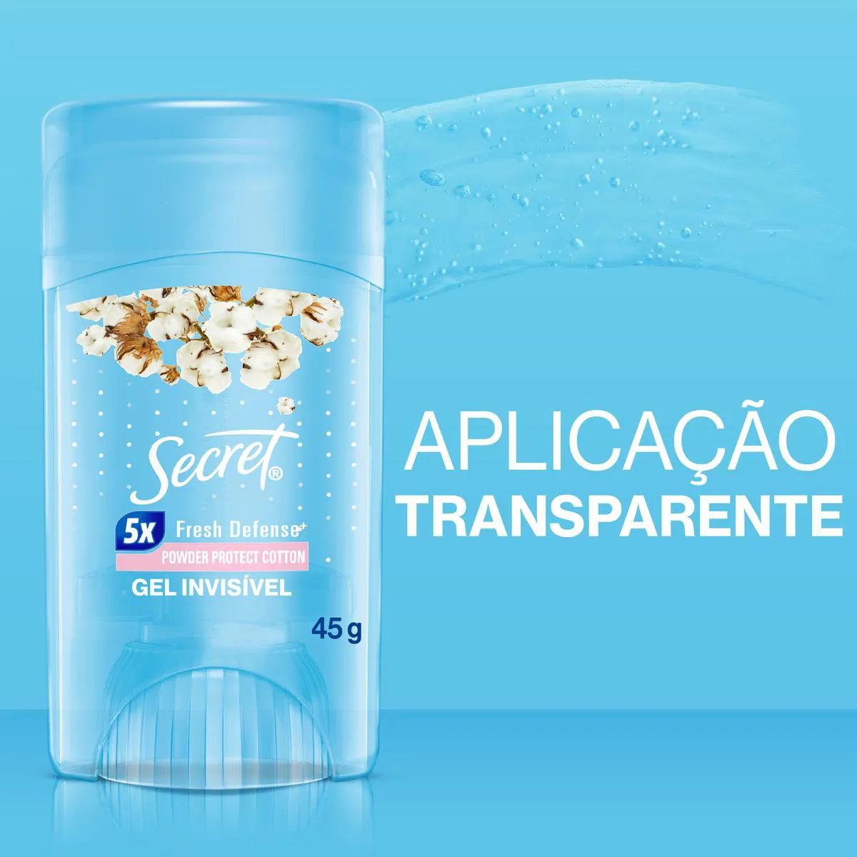 O Secret é um desodorante em gel que auxilia no combate ao suor nas axilas.