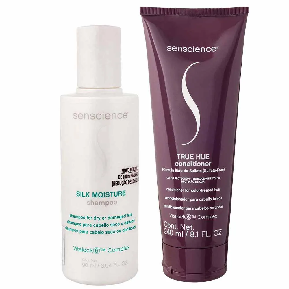 O Senscience Quimicamente Tratados e Ressecados Kit, composto por Shampoo Silk Moisture e Condicionador True Hue, é a solução ideal para cabelos danificados, secos e ressecados.