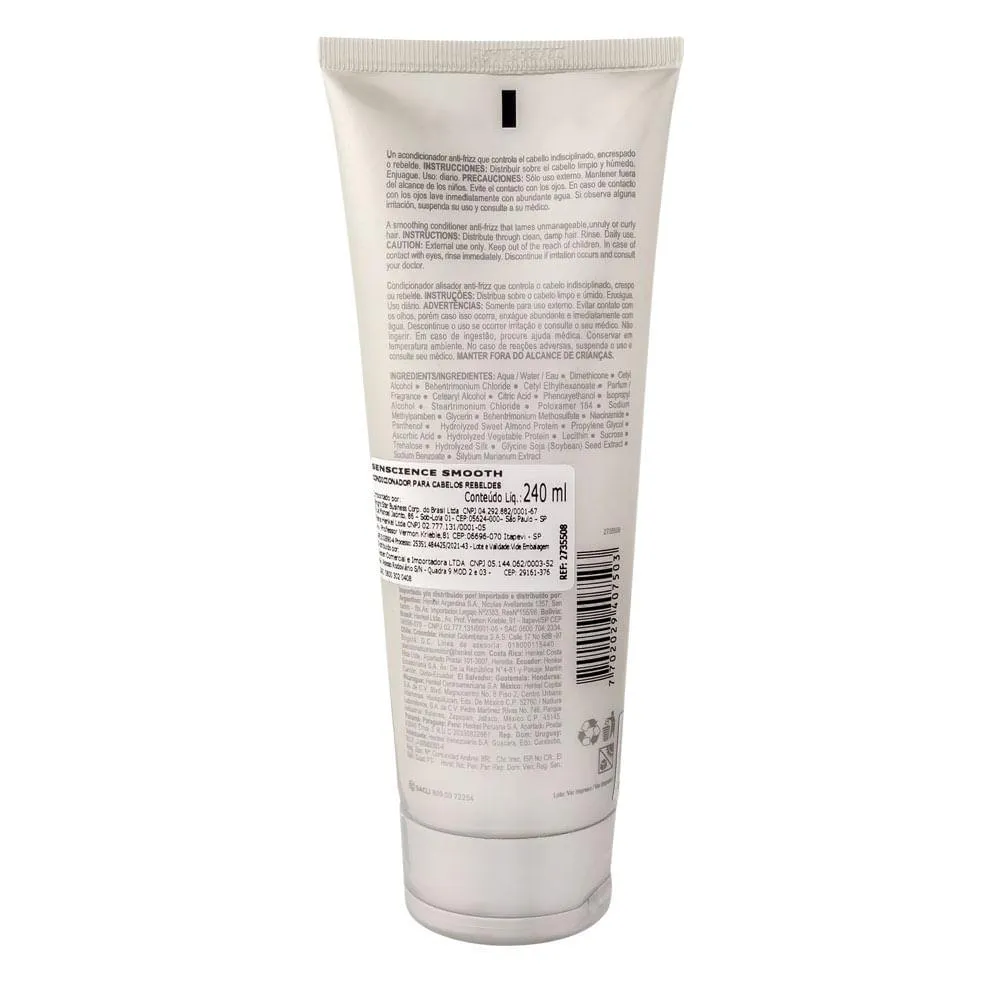 O Condicionador Senscience Smooth é a escolha ideal para quem deseja cabelos mais disciplinados, macios e livres do frizz. Desenvolvido com a tecnologia exclusiva da Senscience, sua fórmula nutritiva hidrata profundamente os fios, proporcionando suavidade, controle e brilho intenso. Enriquecido com proteínas da seda e extratos botânicos, ajuda a alinhar a fibra capilar, tornando os cabelos mais fáceis de pentear e com uma aparência sedosa e saudável.