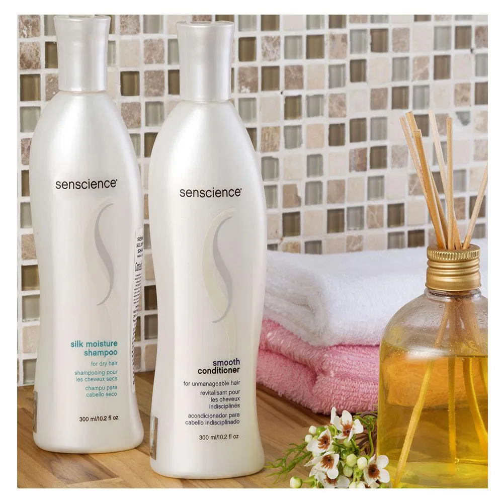 O condicionador Smooth Senscience conta com ingredientes especiais de condicionamento que atuam penetrando dentro da cutícula e unindo-se à estrutura exterior do cabelo para ajudar a fortalecer e dar maciez aos fios. Deixam os cabelos fantásticos, macios e fortes. Cabelos rebeldes tornam-se maleáveis e fáceis de pentear.