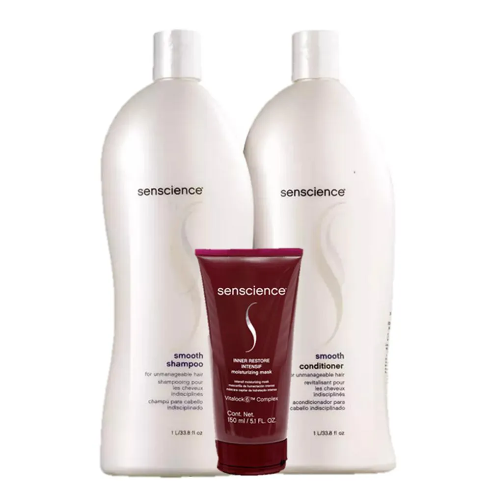 Kit de tratamento para cabelos rebeldes, com frizz ou grossos. Senscience Smooth Duo Kit limpa, desembaraça e condiciona, disciplinando e reduzindo o aspecto arrepiado.A incrível tecnologia de Senscience Smooth Duo Kit nutre a fibra capilar e fortalece, proporcionando maciez e flexibilidade.