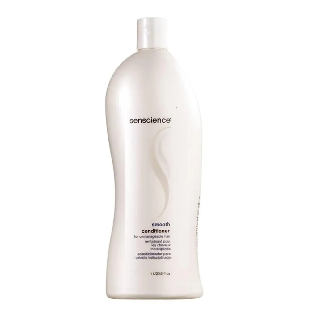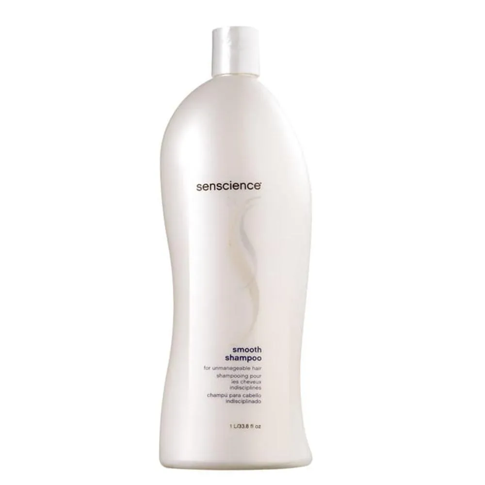 Senscience Smooth - Shampoo 1000ml: shampoo para cabelos rebeldes, com frizz, cacheados ou grossos. Limpa, disciplinando os fios e proporcionando maciez. Ele reduz o frizz, controla o aspecto arrepiado e fortalece a fibra capilar.