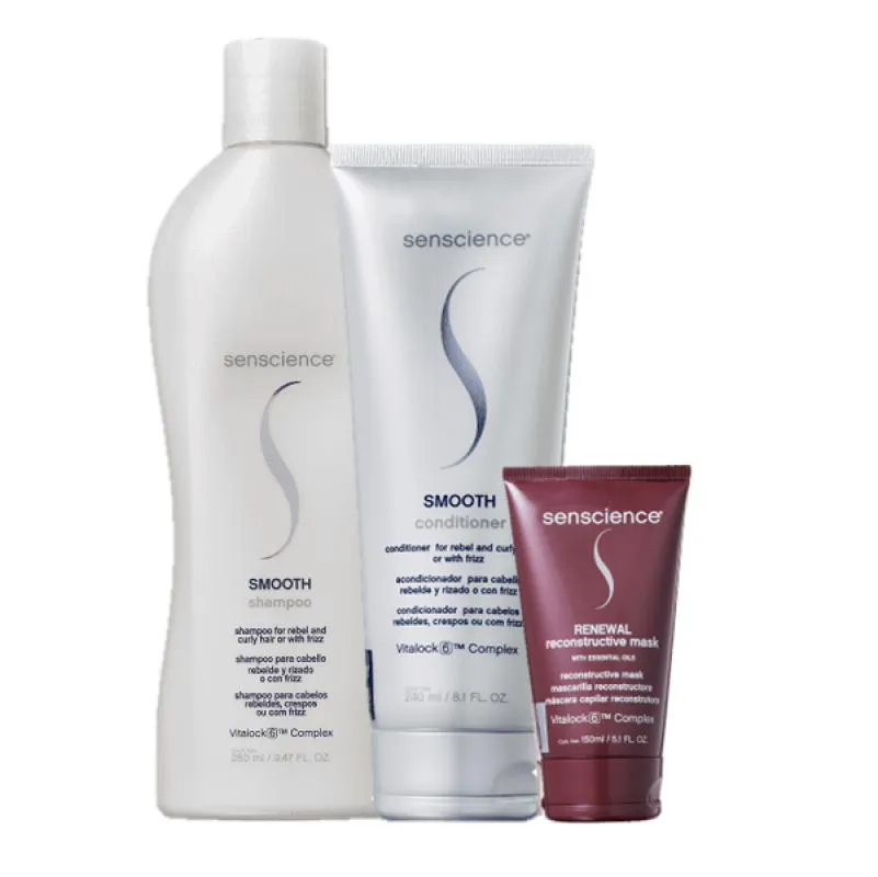 Nossos Experts Ensinam Para melhores resultados, use a linha completa Smooth, de Senscience. condicionador Senscience Smooth Condicionador para cabelos rebeldes e com frizz. Senscience Smooth facilita o desembaraçar e proporciona disciplina e controle aos fios. Usando o Condicionador Senscience Smooth , seus fios são alinhados, domados, recuperados e restaurados, ficando saudáveis e com uma textura mais macia e sedosa. Além disso, ganham força e nutrição. Conselho de Aplicação