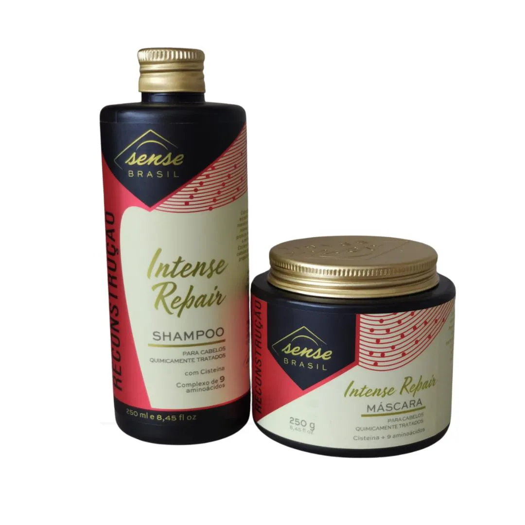 1 Shampoo + 1 Máscara Intense Repair 250ml (Reconstrução: Com o complexo de 9 aminoácidos, além da cisteína, a Intense Repair promove a reposição proteica levando à diminuição dos danos e melhora na textura dos cabelos. Forma um filme que protege as fibras das agressões externas.