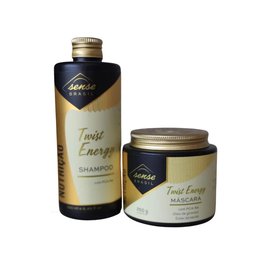 1 Shampoo + 1 Máscara Twist Energy 250ml (Nutrição): Proporciona ação condicionante e emoliente, formadora de filme sobre os cabelos