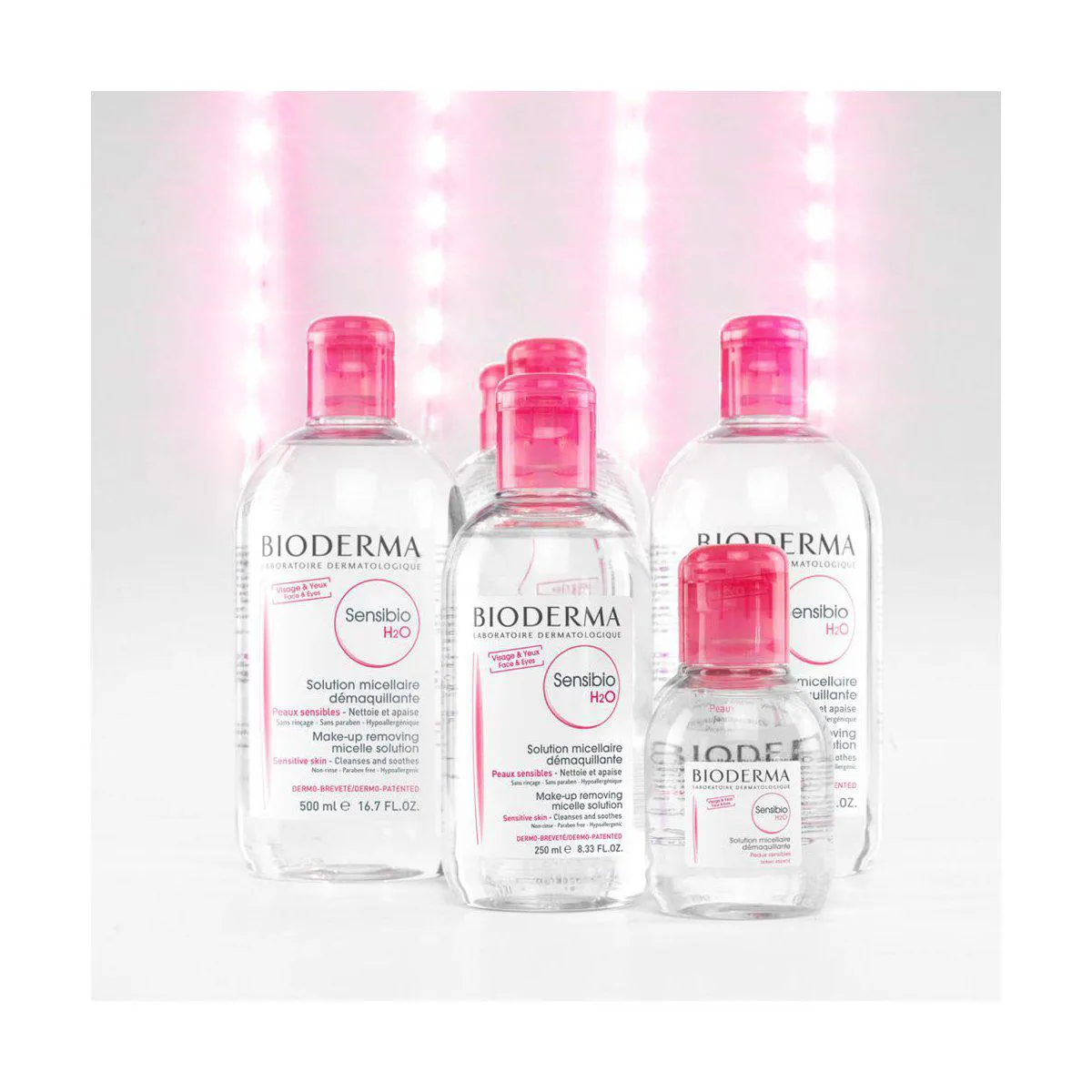 Solução Micelar Sensibio H2O da Bioderma sua fórmula minimalista, em pH fisiológico, é composta por água altamente purificada e de qualidade farmacêutica que garante excelente tolerância. O cucumis sativus (extrato de pepino) acalma e descongestiona enquanto a patente DAF aumenta a tolerância da pele contra as agressões externas. Verdadeiro cuidado desde a higiene, Sensibio H2O é hipoalergênico e não contém óleo, álcool, perfume, sabão ou parabenos. Não é necessário enxaguar: após usar Sensibio H2O, sua pele está perfeitamente limpa, pura e pronta para a próxima etapa de cuidados. A preferida dos dermatologistas. A água micelar nº1. Testada sob controle dermatológico e oftalmológico.